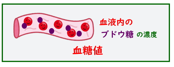 ここでの血液内のブドウ糖の濃度が血糖値の値です。