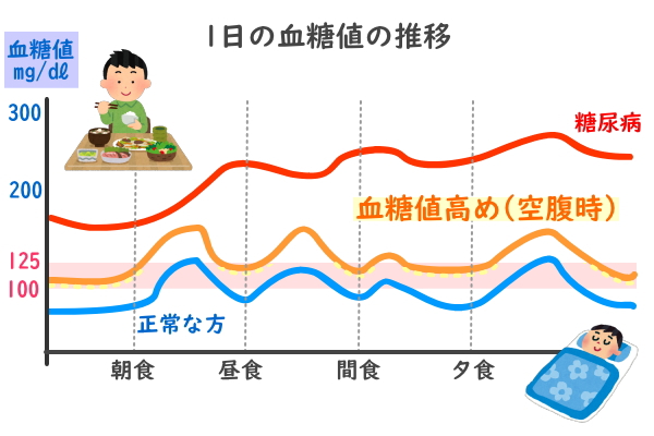 このように食後と空腹時での血糖値はまったく別のものになります。