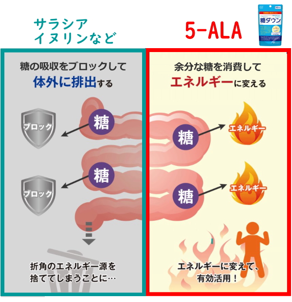 とこのように5-ALAは代謝能力を上げエネルギーを燃やすことで体に良い状態を作り出すということであり、他の血糖値ケア成分とは根本的に全く仕組みが異なるスゴイ成分なのです。