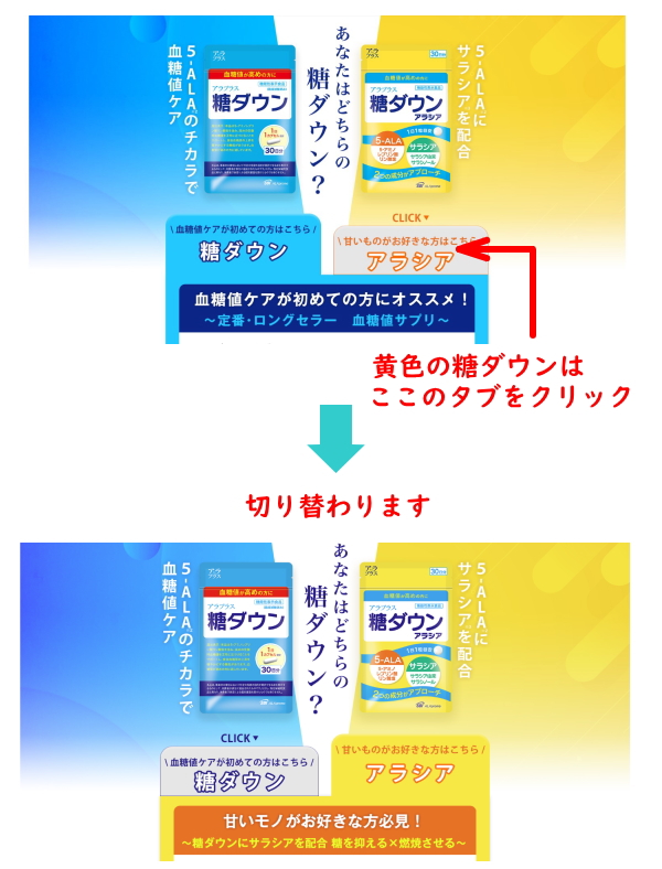 糖ダウン、糖ダウンアラシア、どちらも同じページから購入できます。
